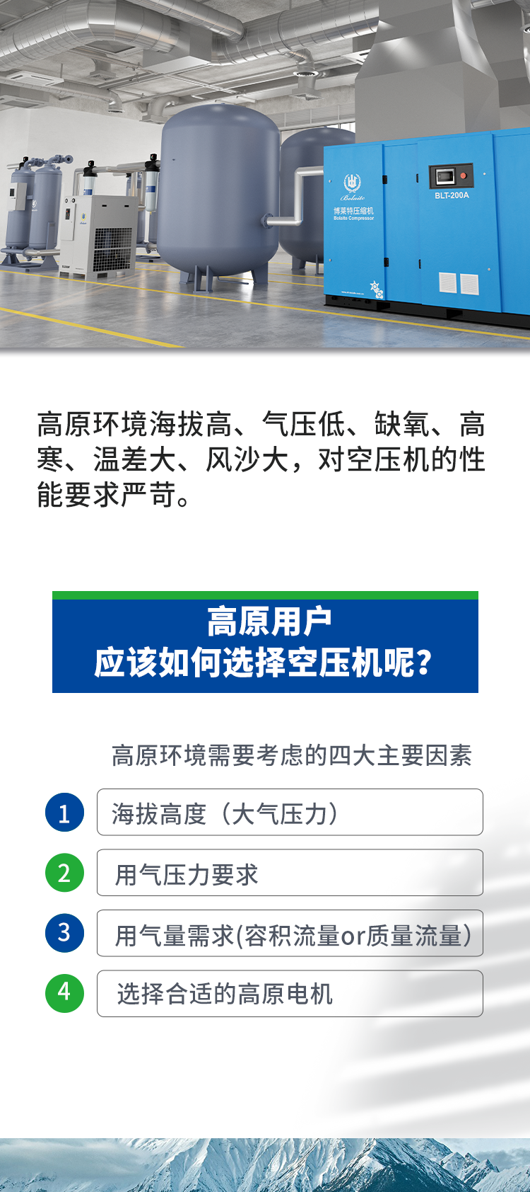 高原環(huán)境,博萊特壓縮機(jī)應(yīng)該如何選?