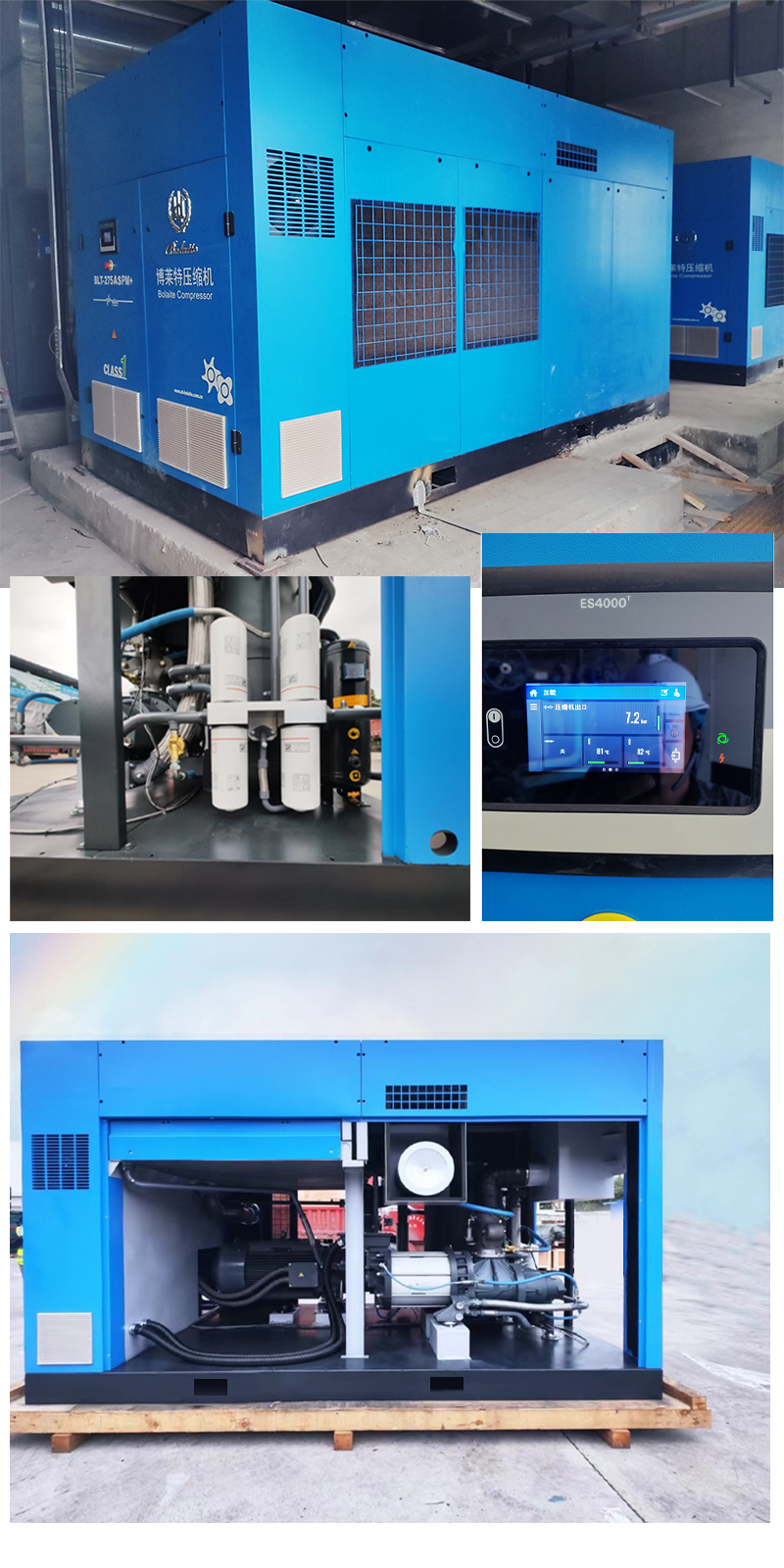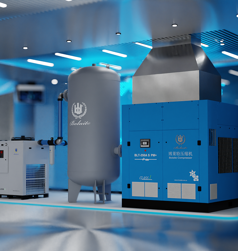 考慮到現(xiàn)場的用氣量變化范圍在40%-100%,為減少空壓機(jī)泄載時(shí)消耗的“碳”能量,博萊特推薦了BLT-275A S PM+系列雙驅(qū)變頻系列,該系列獲得國家一級能效。滿足用戶用氣量的同時(shí),盡可能地減少碳排放。