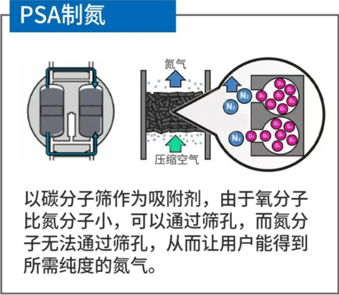 PSA制氮技術(shù)可以生產(chǎn)純度高達99%的高流量氮氣,雖然PSA制氮機的初始投資成本高于膜式制氮機,但是產(chǎn)生的氮氣流量和純度更加高,應(yīng)用也更加廣泛,更多關(guān)于博萊特空壓機制氮的知識歡迎咨詢。